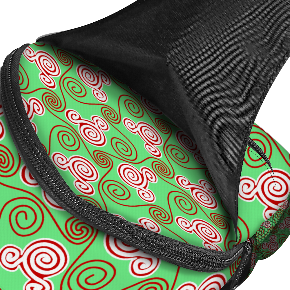 Designs may not match up perfectly on the side and seams--sorry, but this can not be fixed. Note that contact with rough surfaces may pull out the white under fibers of the fabric, damaging the item.