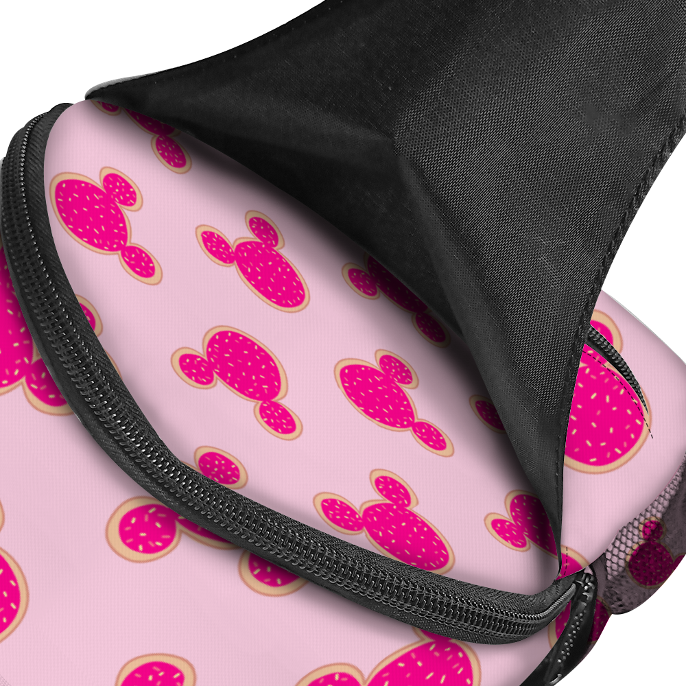 This bag is perfect for your next family vacation or everyday bag. It features my artwork printed on a super comfortable, versatile, and lightweight bag. This has an adjustable cushioned strap that is versatile beccause you can switch the hook to strap on the left or the right side, depending on which side you like to carry your bag. It has plenty of pockets and includes and easy to open buckle THAT IS PERFECT FOR HOLDING MOUSE EARS!! The one should strap allows you to easily swing the bag to the front when you are sitting down without taking it off.