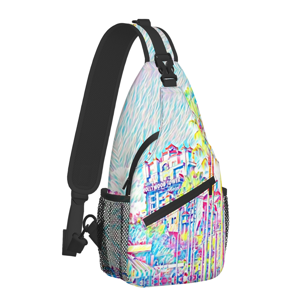This bag is perfect for your next family vacation or everyday bag. It features my artwork printed on a super comfortable, versatile, and lightweight bag. This has an adjustable cushioned strap that is versatile beccause you can switch the hook to strap on the left or the right side, depending on which side you like to carry your bag. It has plenty of pockets and includes and easy to open buckle THAT IS PERFECT FOR HOLDING MOUSE EARS!! The one should strap allows you to easily swing the bag to the front when you are sitting down without taking it off.