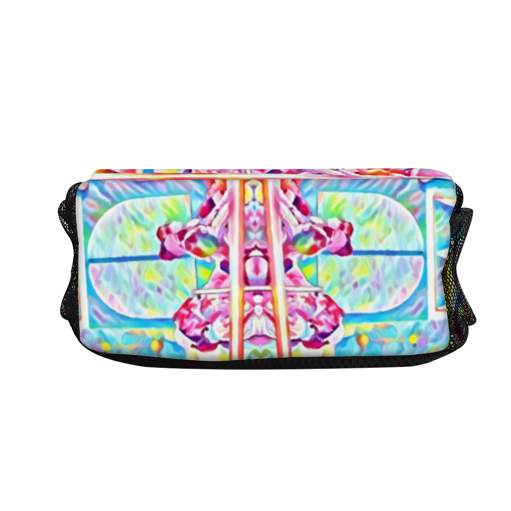 This bag is perfect for your next family vacation or everyday bag. It features my artwork printed on a super comfortable, versatile, and lightweight bag. This has an adjustable cushioned strap that is versatile beccause you can switch the hook to strap on the left or the right side, depending on which side you like to carry your bag. It has plenty of pockets and includes and easy to open buckle THAT IS PERFECT FOR HOLDING MOUSE EARS!! The one should strap allows you to easily swing the bag to the front when you are sitting down without taking it off.