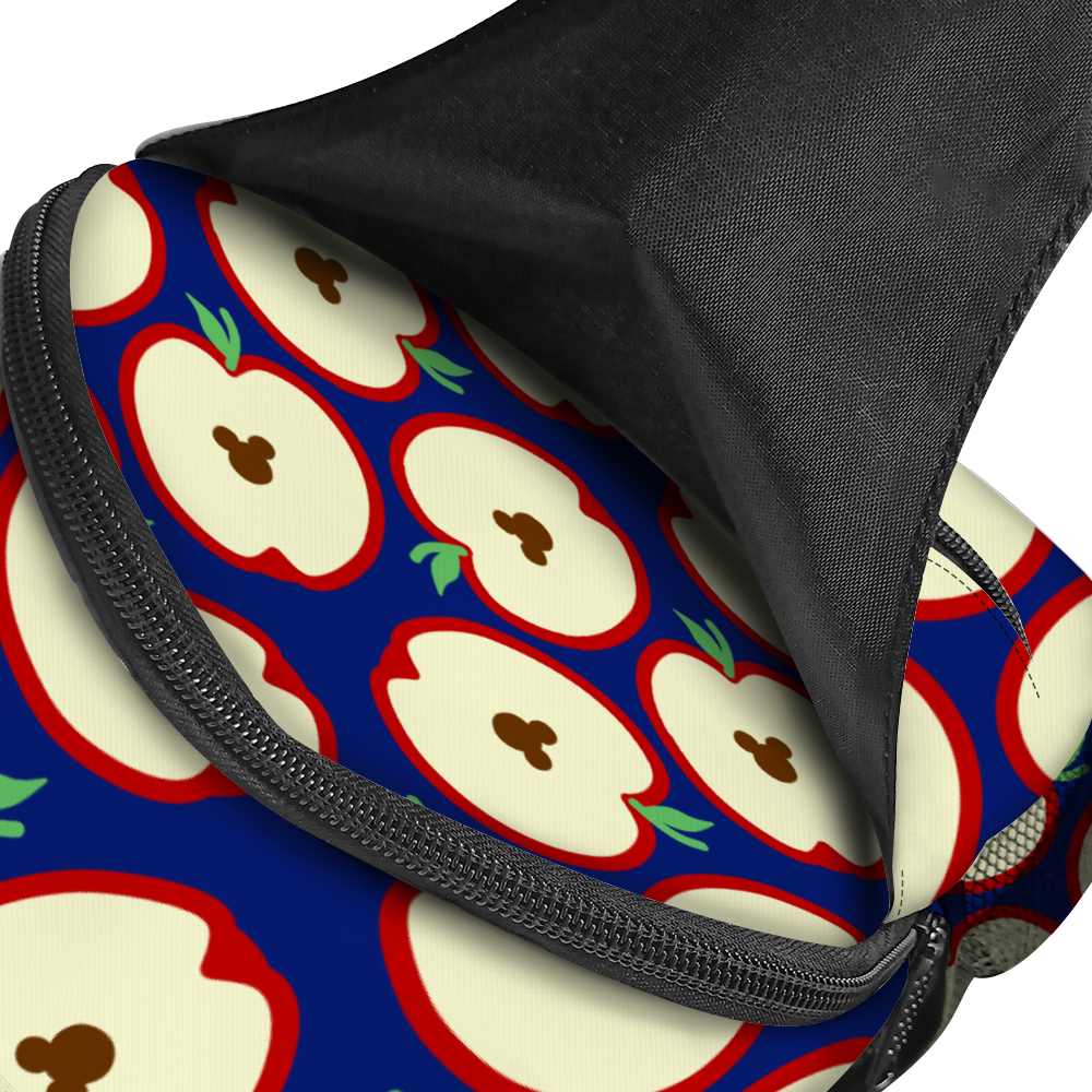 Designs may not match up perfectly on the side and seams--sorry, but this can not be fixed. Note that contact with rough surfaces may pull out the white under fibers of the fabric, damaging the item.