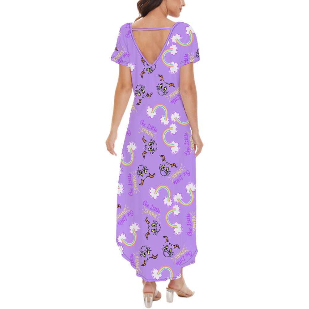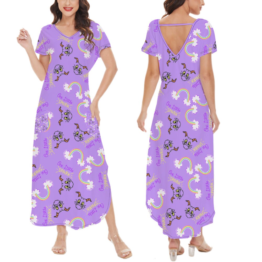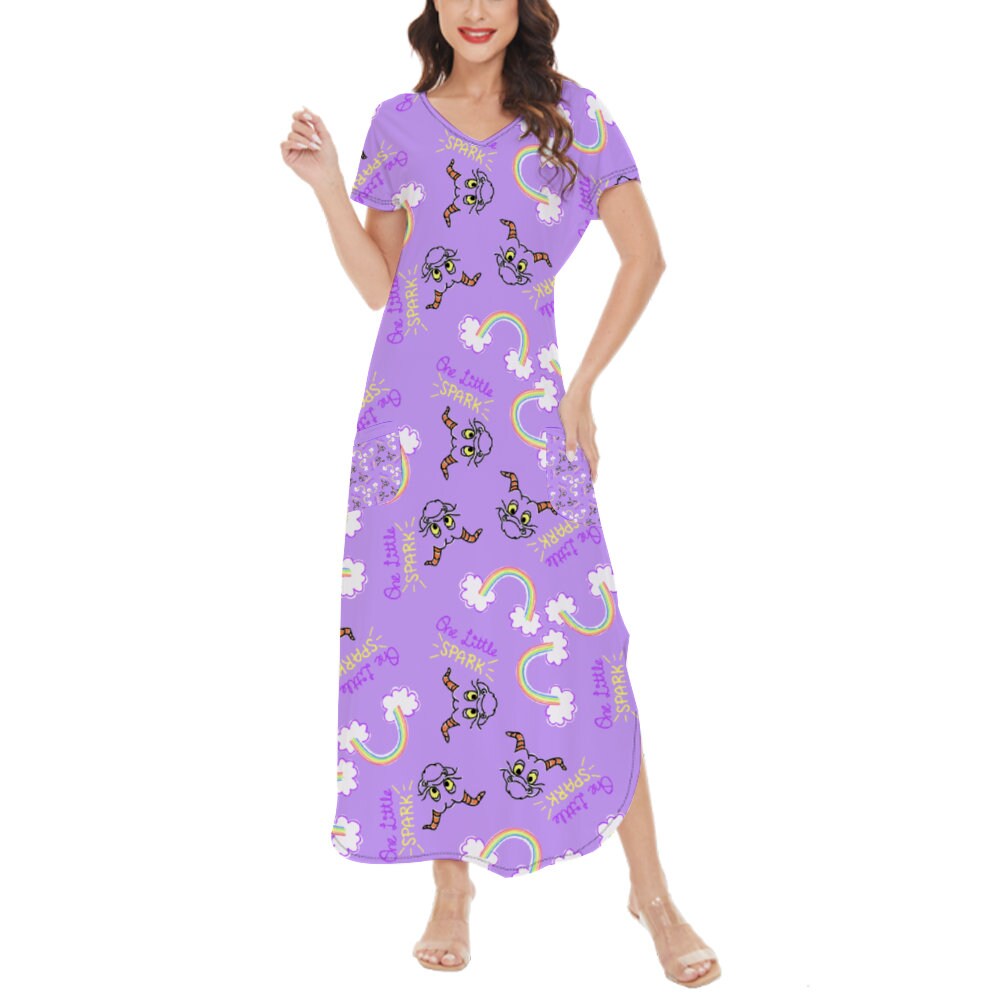 Custom Women's V Neck Long Dress Stylish Short Sleeve Dress