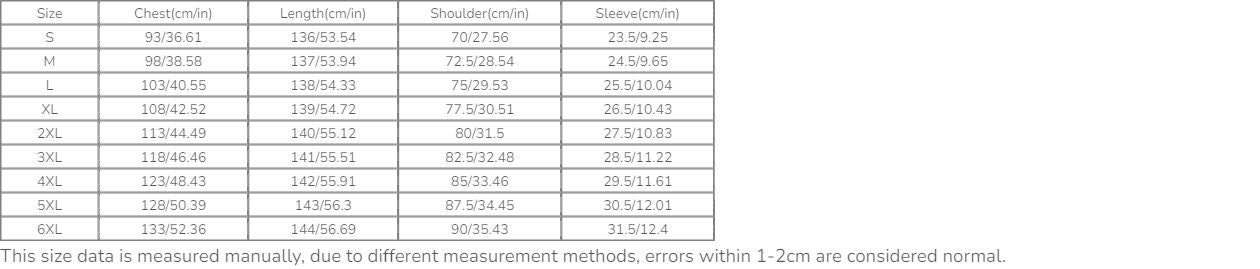 This size data is measured manually, due to different measurement methods, errors within 1-2cm are considered normal.