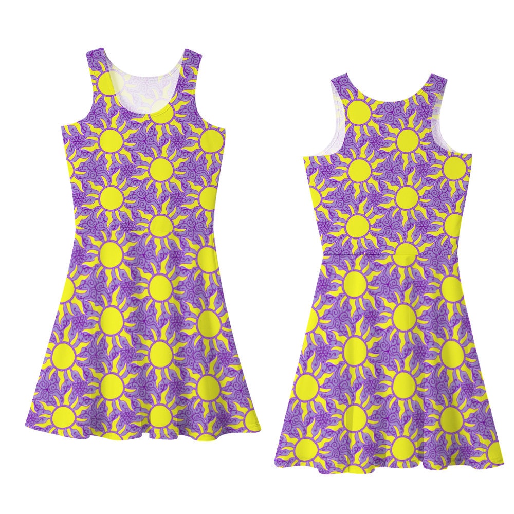 Step into a world of enchantment and embody the spirit of a lost princess with this stunning Punzie Sun Dress! Crafted with care and designed for Disneybounding outfits, this purple skirt is inspired by a certain long-haired princess who embarked on a mesmerizing adventure.