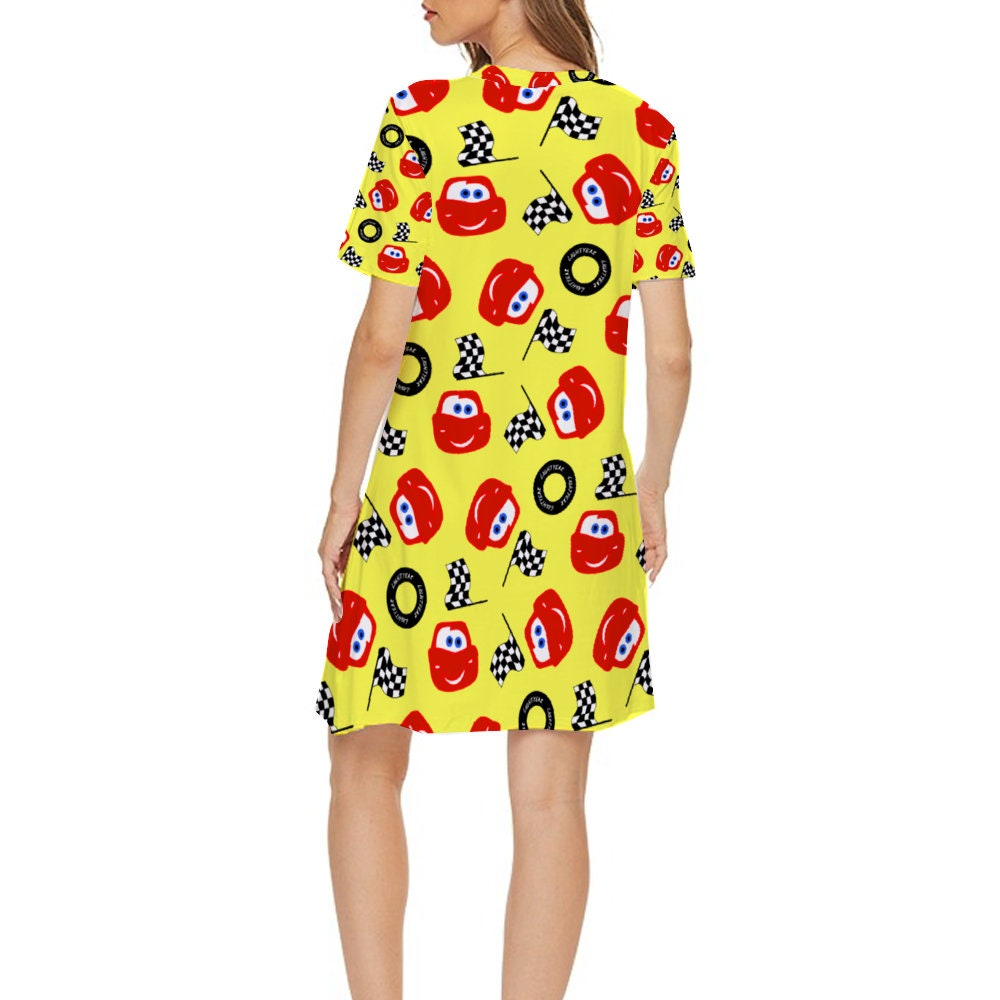 Race car Lightning Racer All Over Print Casual Short-sleeved Dress Short Mini Shift Skirt