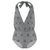 This one-piece printed swimsuit with adjustable strings and is backless.