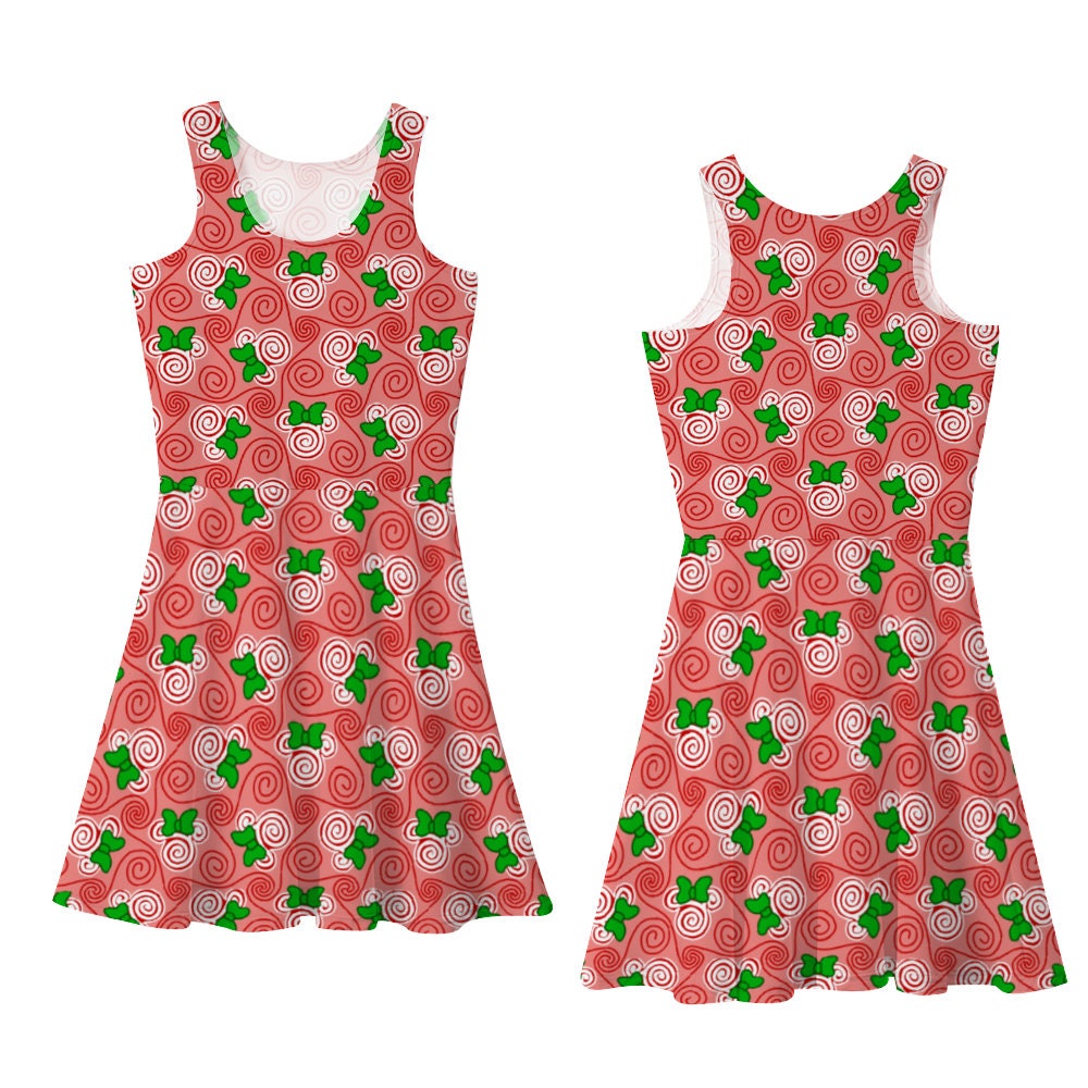 This item features hand drawn art that I designed. It is bright, colorful, and fun--perfect for you next family vacation or family photos. A must for any theme park fans and makes a perfect christmas gift!Custom Women's Sleeveless Dress Stylish Round Neck Knee-length Skirt